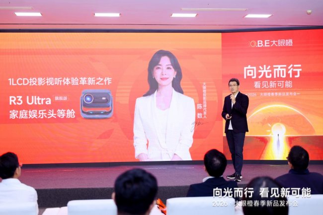 4月16日,国内智能投影职业头部品牌大眼橙于深圳隆重举行2026春季新品发布会。本次发布会以“向光而行看见新或许”为中心主题,重磅推出R3Ultra系列、C3Max两款中心投影新品,并跨界首发首款AI智能眼镜,完结从家用投影到全场景智能显现的战略拓宽。现场同步官宣品牌九周年代言人陈数,以品牌晋级之势,携手传递“给你美好生活每一天”的中愿望景。
